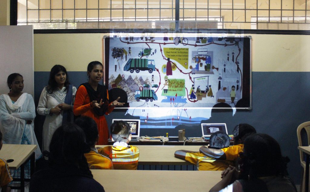 Team member Shabreen facilitating a zero-waste workshop at the local M.M School in Bangalore