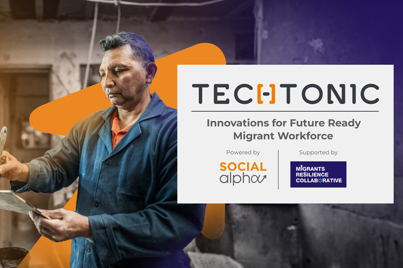 Over 200 million individuals from India’s marginalised communities depend on internal migration as a means of their livelihood. Given the growing impact of climate change and climate action on rural livelihoods, migration will continue to increase as a livelihood strategy. Social Alpha has launched Techtonic – Innovations for Future Ready Migrant Workforce in partnership with the Migrants Resilience Collaborative. The objective of this program is to create a stack of innovative and viable solutions that collectively catalyse upward mobility for migrant workers, contributing to a more sustainable, inclusive and equitable future.